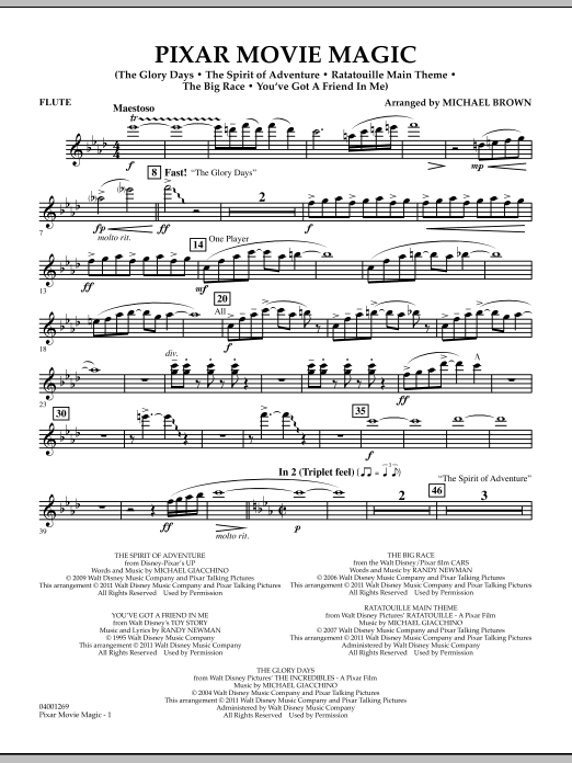 Seit 1995, als Toy Story in die Kinos kam, hat uns das kreative Team der Pixar Studios herzerwärmende Geschichten und unvergessliche Figuren geschenkt, die Zuschauer aller Altersgruppen ansprechen. Und die Musik, die für diese Filme geschaffen wurde, ist ein wesentlicher Bestandteil ihrer Popularität und ihres Charmes. Michael Brown hat ein großartiges Medley dieser bekannten Melodien zusammengestellt, darunter: You've Got a Friend in Me (Toy Story), The Spirit of Adventure (Up), The Glory Days (The Incredibles), The Big Race (Cars) und Ratatouille Main Theme.