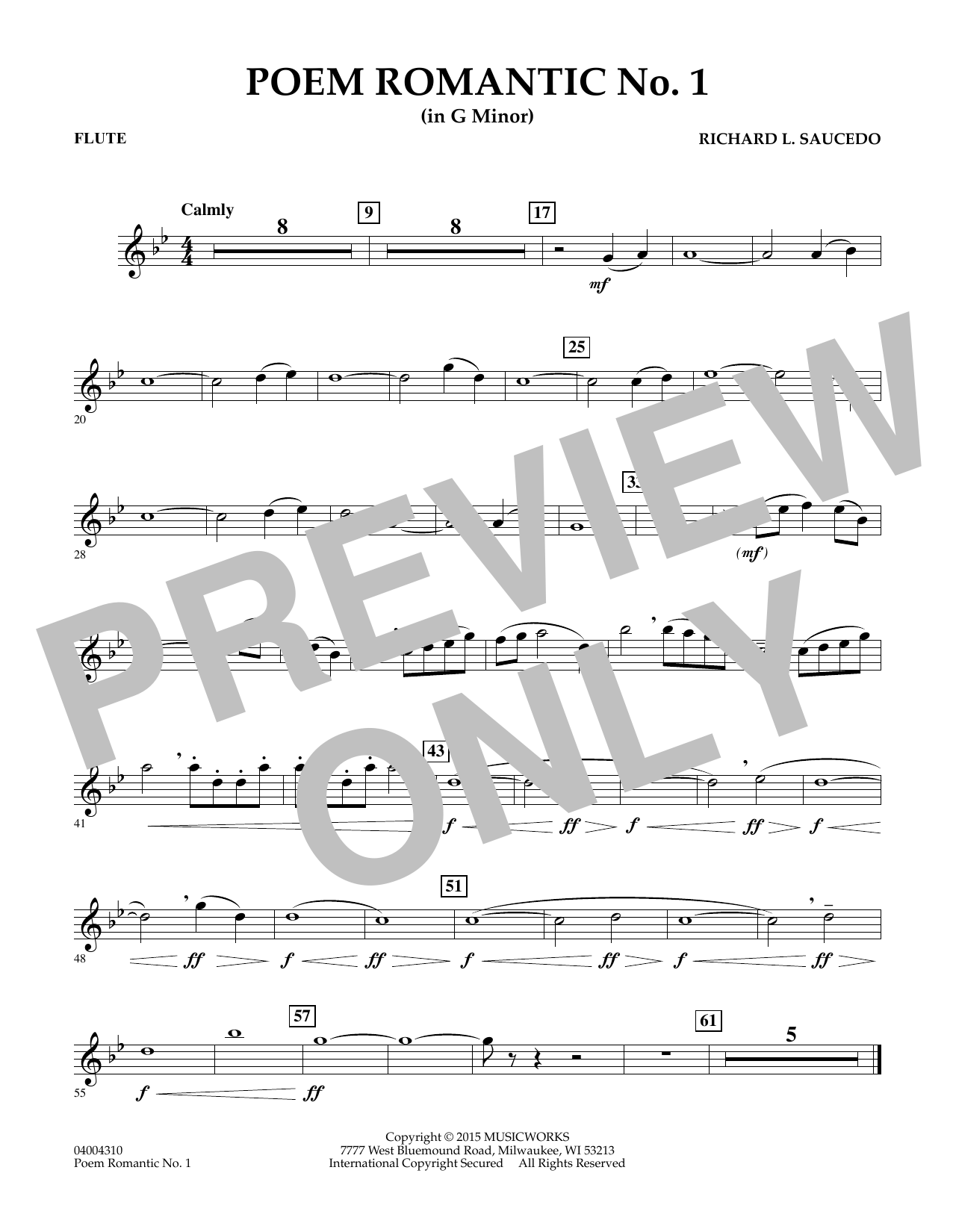 This lyric work provides an opportunity for your band to experience the musical style of Chopin in an effective setting for second year players. Featuring legato phrases, darker sonorities, and an engaging harmonic progression, Poem Romantic No. 1 offers musical rewards for the young level. Dur: 2:40