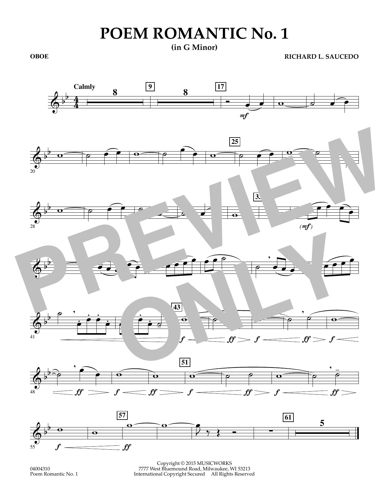 This lyric work provides an opportunity for your band to experience the musical style of Chopin in an effective setting for second year players. Featuring legato phrases, darker sonorities, and an engaging harmonic progression, Poem Romantic No. 1 offers musical rewards for the young level. Dur: 2:40