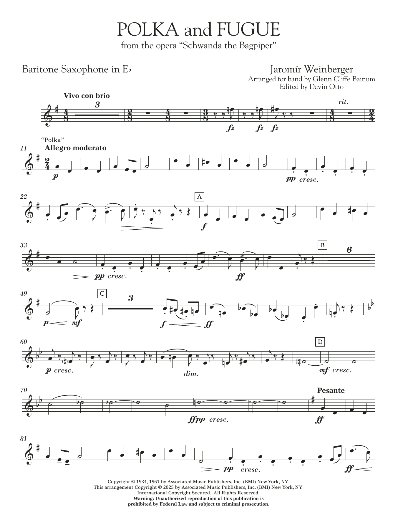(from Schwanda, the Bagpiper) - Eb Baritone Sax