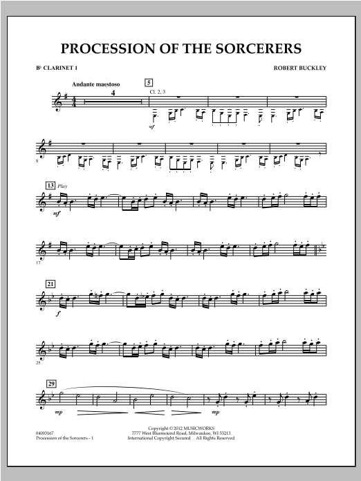 Imagine a colorful procession of magical and mythical characters and creatures. Imagine wizards and witches; jesters and jugglers; magicians and minstrels; gargoyles and goblins. Imagine brightly decorated wagons drawn by unicorns with stilt walkers and acrobats on unicycles. Imagine them all moving past in a stately procession heading towards Merlin's enchanted castle in the distance! Unique and descriptive, this marvelous work includes optional parts for choir (or synthesizer) for added enhancement and dramatic effect. Dur: 3:30