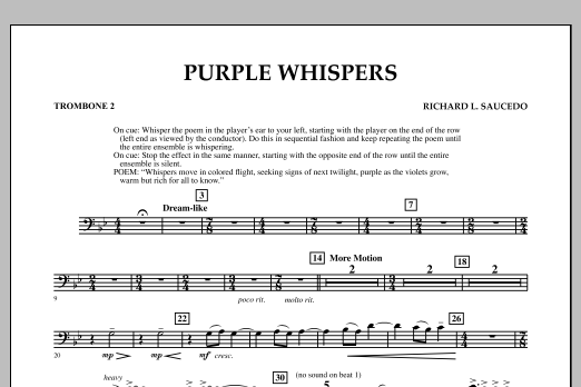 This remarkable and descriptive work opens and closes with members of the ensemble whispering to one another, creating a soft yet chaotic effect. The simple poem is by the composer: Whispers move in colored flight, seeking signs of next twilight, purple as the violets grow, warm but rich for all to know. As the piece progresses, introduced by a solo piano, the listener is taken through a dynamic range of emotional tension and release before the quiet mood returns to close out this uniquely effective composition. Dur: 5:15 Recorded by the Marshall University Wind Symphony - Steve Barnett, conductor