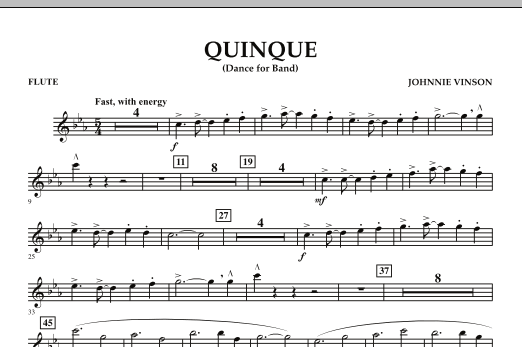 Quinque (the Latin word for five) is a great way to introduce the 5/4 meter to your young players. Consistently using a 3+2 rhythmic grouping through, the melodies and accompaniment figures are easy to learn. This piece features an appealing dance-like quality, lots of variety in scoring, plus tutti ensemble patterns with short feature spots for percussion. Dur: 2:35 (Grade 2)