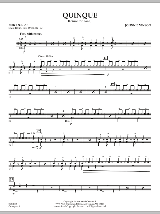 Quinque (the Latin word for five) is a great way to introduce the 5/4 meter to your young players. Consistently using a 3+2 rhythmic grouping through, the melodies and accompaniment figures are easy to learn. This piece features an appealing dance-like quality, lots of variety in scoring, plus tutti ensemble patterns with short feature spots for percussion. Dur: 2:35 (Grade 2)