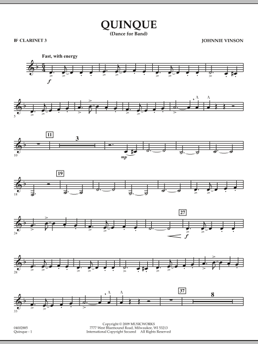 Quinque (the Latin word for five) is a great way to introduce the 5/4 meter to your young players. Consistently using a 3+2 rhythmic grouping through, the melodies and accompaniment figures are easy to learn. This piece features an appealing dance-like quality, lots of variety in scoring, plus tutti ensemble patterns with short feature spots for percussion. Dur: 2:35 (Grade 2)