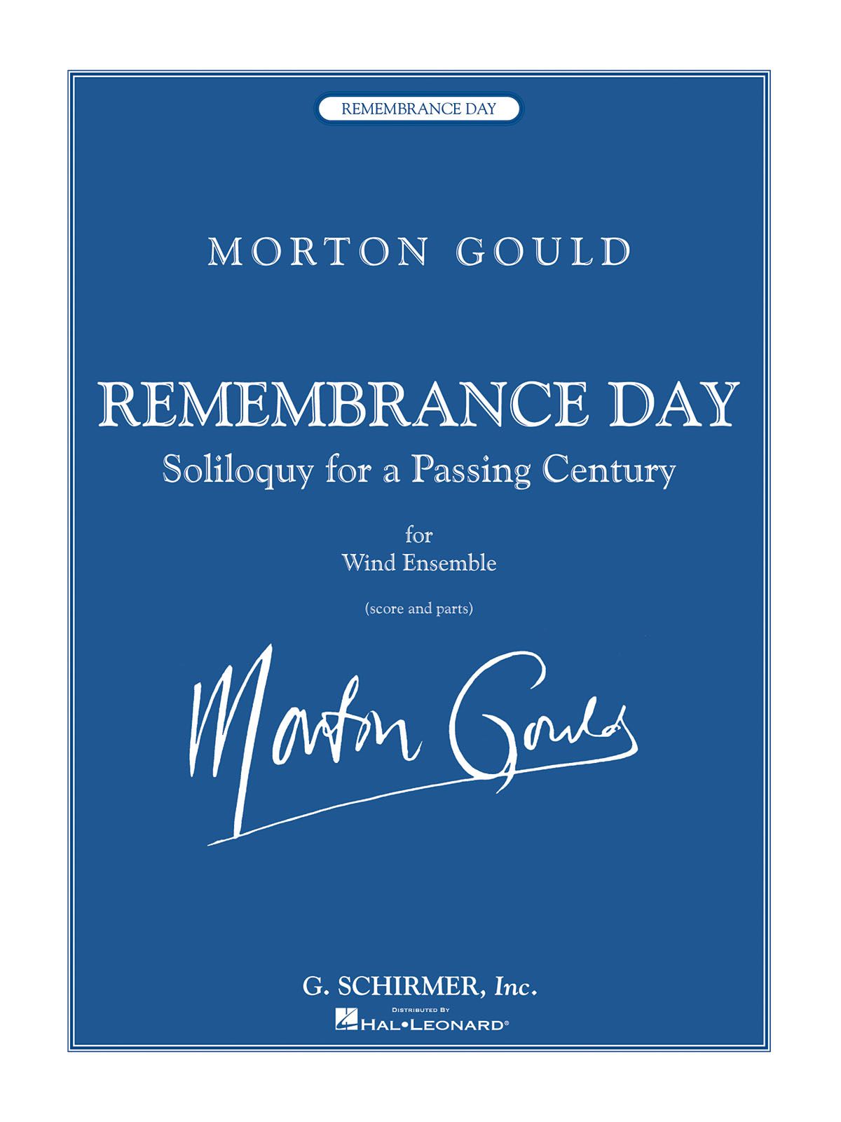 G. Schirmer Concert Band - Grade 3-5 Premiered by the University of Connecticut Wind Ensemble in the presence of President Clinton, Gould's last large work for wind ensemble is a striking mood piece that conveys a melancholic feeling. A haunting marimba solo opens this work that challenges players with its spare exposed textures and wide dynamic range. President Clinton called it a treasure. (Grade 5) (9:00)