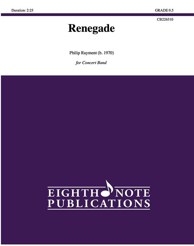 Renegade ist ein aufregendes Stück für junge Bands, das sich auf die Musik Beethovens bezieht - einen der berühmtesten Komponisten der Geschichte und einen wahren \\renegade\\ der Musikwelt. Im gesamten Stück finden sich subtile (und manchmal auch weniger subtile) Anspielungen auf Beethovens Mondscheinsonate, die 9. Symphonie, die 5. Symphonie, die Fur Elise und die 7. Wir hoffen, dass dieses Stück junge Spieler begeistern und als Einführung in die Musik eines wahren Renegaten und eines der größten Komponisten aller Zeiten dienen wird!