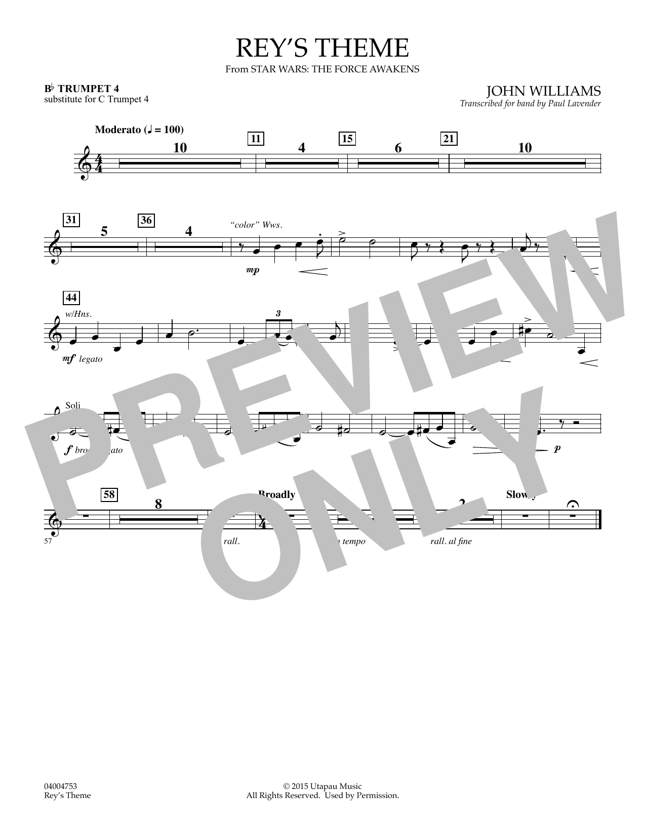from Star Wars: The Force Awakens) - Bb Trumpet 4 (sub. C Tpt. 4)
