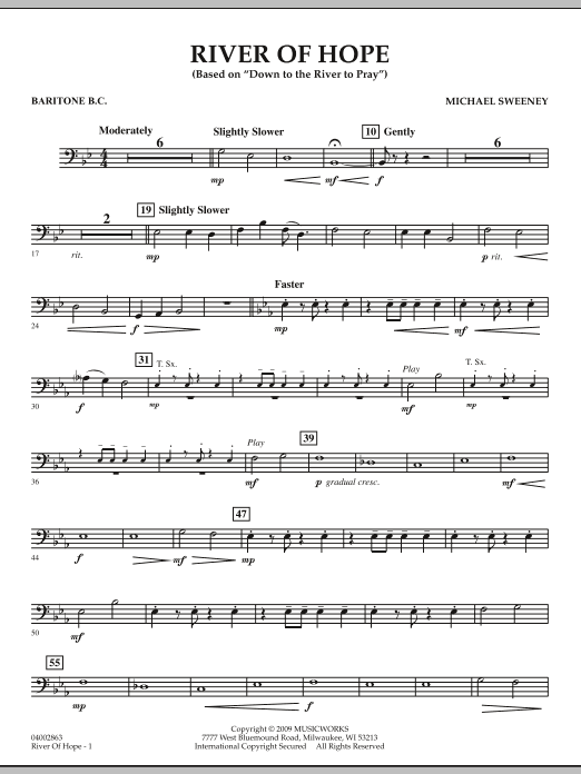 The centerpiece of this work for band is the memorable Appalachian folk hymn Down to the River to Pray, which was featured in the 2000 film O Brother, Where Art Thoü Interspersed with this melody is a faster original theme that provides a complementary yet contrasting tone to the emotional statements of the folk hymn. Richly scored and flowingly beautiful. Dur: 4:25 (Grade 2-1/2)