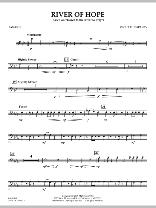 The centerpiece of this work for band is the memorable Appalachian folk hymn Down to the River to Pray, which was featured in the 2000 film O Brother, Where Art Thoü Interspersed with this melody is a faster original theme that provides a complementary yet contrasting tone to the emotional statements of the folk hymn. Richly scored and flowingly beautiful. Dur: 4:25 (Grade 2-1/2)