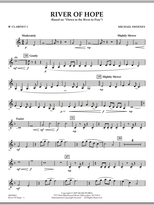 The centerpiece of this work for band is the memorable Appalachian folk hymn Down to the River to Pray, which was featured in the 2000 film O Brother, Where Art Thoü Interspersed with this melody is a faster original theme that provides a complementary yet contrasting tone to the emotional statements of the folk hymn. Richly scored and flowingly beautiful. Dur: 4:25 (Grade 2-1/2)