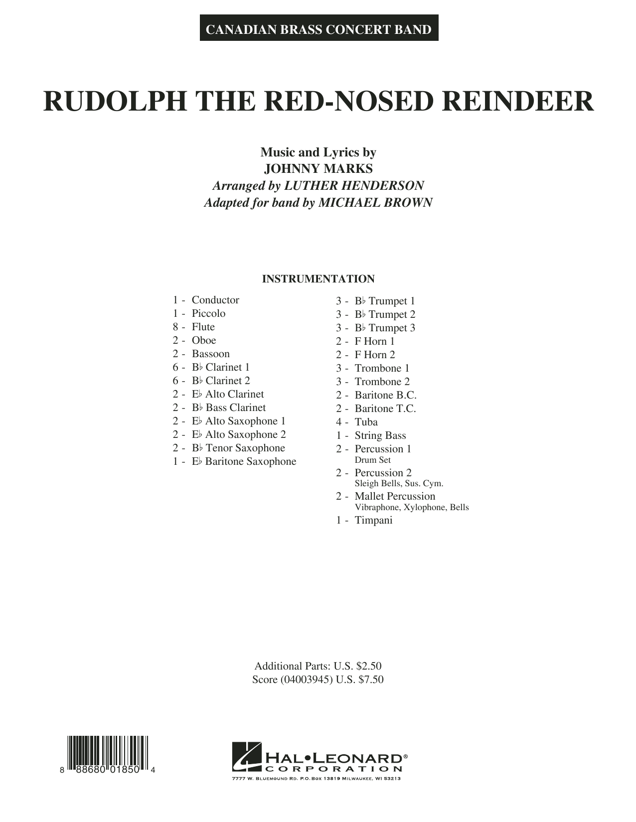 In einem jazzigen, mittelschweren Swing-Stil schuf Luther Henderson eine unvergessliche Vertonung von Rudolph für die Canadian Brass. Michael Browns gekonnte Adaption für Konzertorchester behält die clevere Besetzung und den Scherz des Originals bei und wird dem Publikum ebenso viel Spaß machen wie den Spielern.