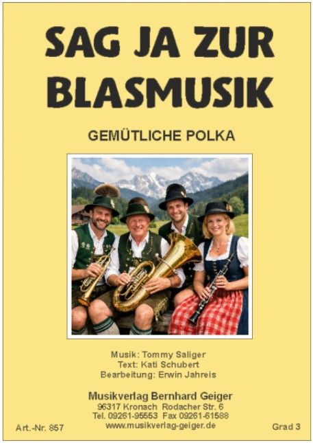Eine gemütliche Polka von Tommy Saliger, die unsere Leidenschaft und Liebe zur Musik musikalisch zum Ausdruck bringt. Das Trio kann natürlich gesunden werden. Tonart: As-Dur auf Des-Dur.