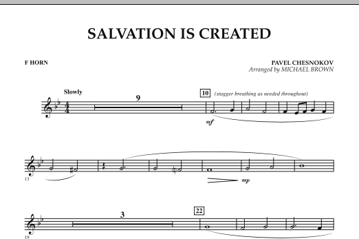 This Russian Orthodox-style choral anthem was composed in 1912. It was one of Chesnokov's last sacred works, and one he never heard performed. Michael Brown has skillfully and faithfully recreated this memorable chorale for young players using reduced instrumentation suitable even for smaller ensembles.