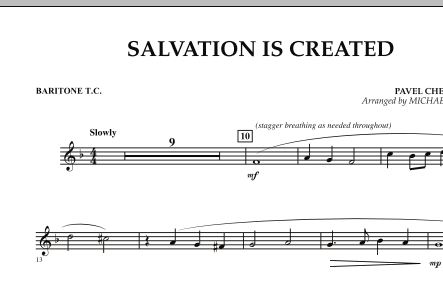 This Russian Orthodox-style choral anthem was composed in 1912. It was one of Chesnokov's last sacred works, and one he never heard performed. Michael Brown has skillfully and faithfully recreated this memorable chorale for young players using reduced instrumentation suitable even for smaller ensembles.