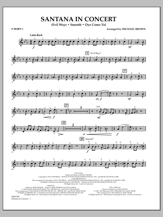 Der einnehmende, sanfte Sound von Carlos Santana ist seit mehr als vier Jahrzehnten beliebt. Dieses wunderbare Medley für die Bühne ist in einem einzigen Tempo geschrieben und enthält Santana-Hits aus all den Jahren, darunter: Evil Ways, Smooth und Oye Como Va.