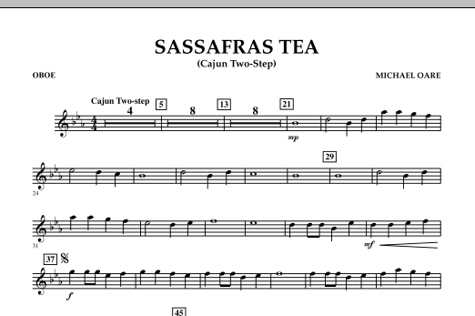 Composed in the style of a Cajun two-step, the simple melody is stated first by the trumpets with a zydeco-inspired accompaniment. An optional advanced trombone part is included with New Orleans style tailgate effects. A washboard and optional keyboard bass part will add to the festive, homegrown sound of a traditional Cajun band in this unique piece that is easy and fun to play! Dur: 2:15