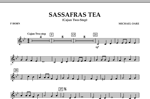 Composed in the style of a Cajun two-step, the simple melody is stated first by the trumpets with a zydeco-inspired accompaniment. An optional advanced trombone part is included with New Orleans style tailgate effects. A washboard and optional keyboard bass part will add to the festive, homegrown sound of a traditional Cajun band in this unique piece that is easy and fun to play! Dur: 2:15