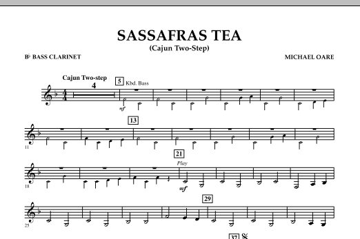 Composed in the style of a Cajun two-step, the simple melody is stated first by the trumpets with a zydeco-inspired accompaniment. An optional advanced trombone part is included with New Orleans style tailgate effects. A washboard and optional keyboard bass part will add to the festive, homegrown sound of a traditional Cajun band in this unique piece that is easy and fun to play! Dur: 2:15