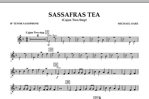 Composed in the style of a Cajun two-step, the simple melody is stated first by the trumpets with a zydeco-inspired accompaniment. An optional advanced trombone part is included with New Orleans style tailgate effects. A washboard and optional keyboard bass part will add to the festive, homegrown sound of a traditional Cajun band in this unique piece that is easy and fun to play! Dur: 2:15