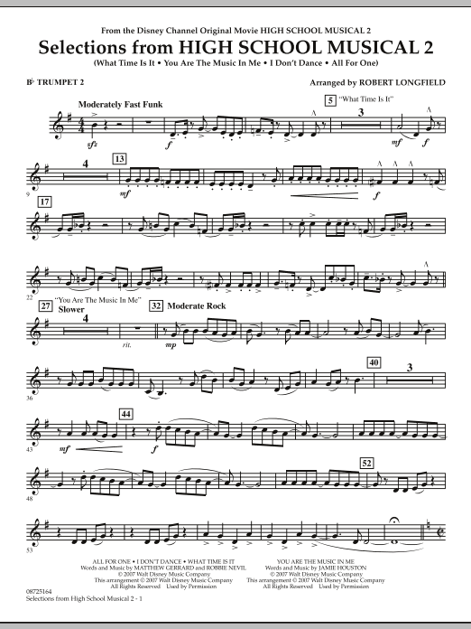 Der zweite Film macht genau da weiter, wo die Popularität des ersten High School Musical aufgehört hat, und bietet mehr Ohrwürmer und energiegeladene Rhythmen. Hier ist ein solide gespieltes Medley mit What Time Is It, You Are the Music in Me und All for One.