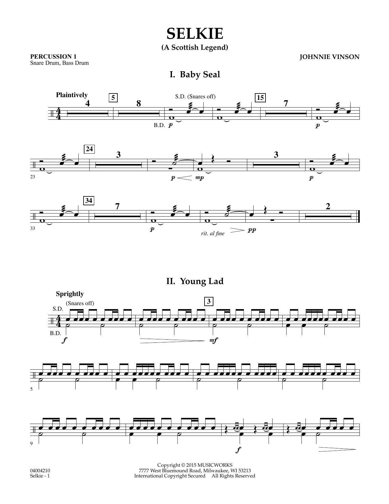 In Celtic folklore, a selkie is a mythical creature appearing as a seal in water, but taking human form on land. In this striking setting for second-year players the first movement, in a lyric and melancholy style, portrays the selkie as a baby seal. The second movement depicts a young boy on land and employs a number of characteristics of traditional Scottish folk tunes. This marvelous work provides opportunities for musical and cross-curricular exploration. Dur: 3:50