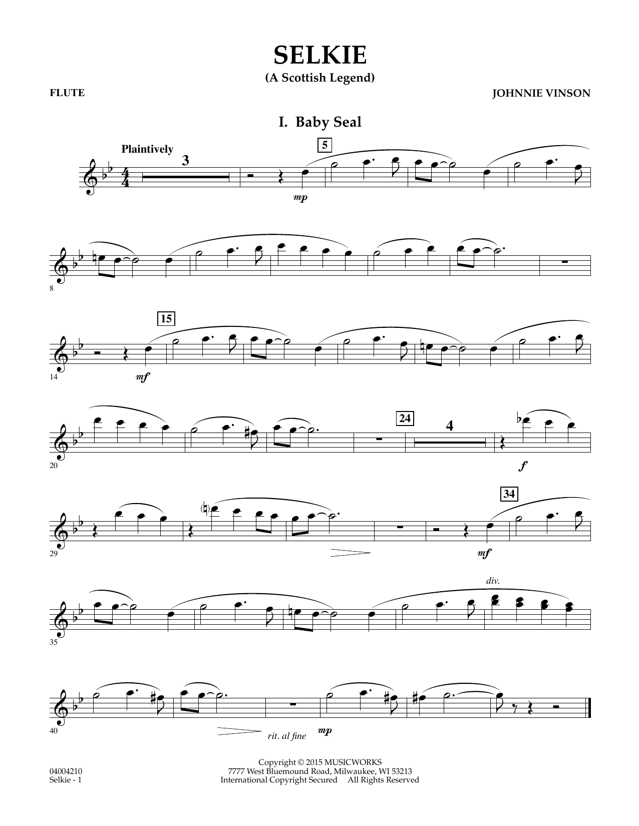 In Celtic folklore, a selkie is a mythical creature appearing as a seal in water, but taking human form on land. In this striking setting for second-year players the first movement, in a lyric and melancholy style, portrays the selkie as a baby seal. The second movement depicts a young boy on land and employs a number of characteristics of traditional Scottish folk tunes. This marvelous work provides opportunities for musical and cross-curricular exploration. Dur: 3:50