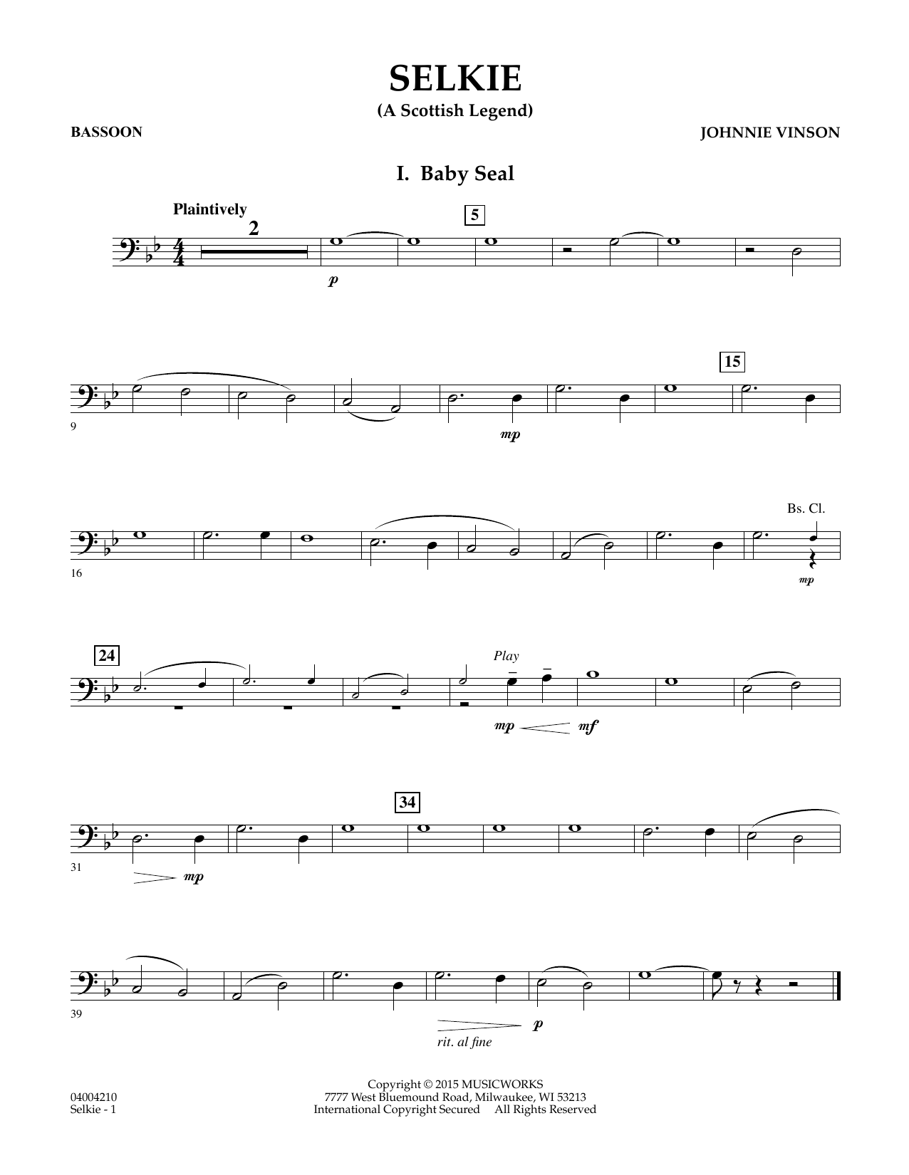 In Celtic folklore, a selkie is a mythical creature appearing as a seal in water, but taking human form on land. In this striking setting for second-year players the first movement, in a lyric and melancholy style, portrays the selkie as a baby seal. The second movement depicts a young boy on land and employs a number of characteristics of traditional Scottish folk tunes. This marvelous work provides opportunities for musical and cross-curricular exploration. Dur: 3:50