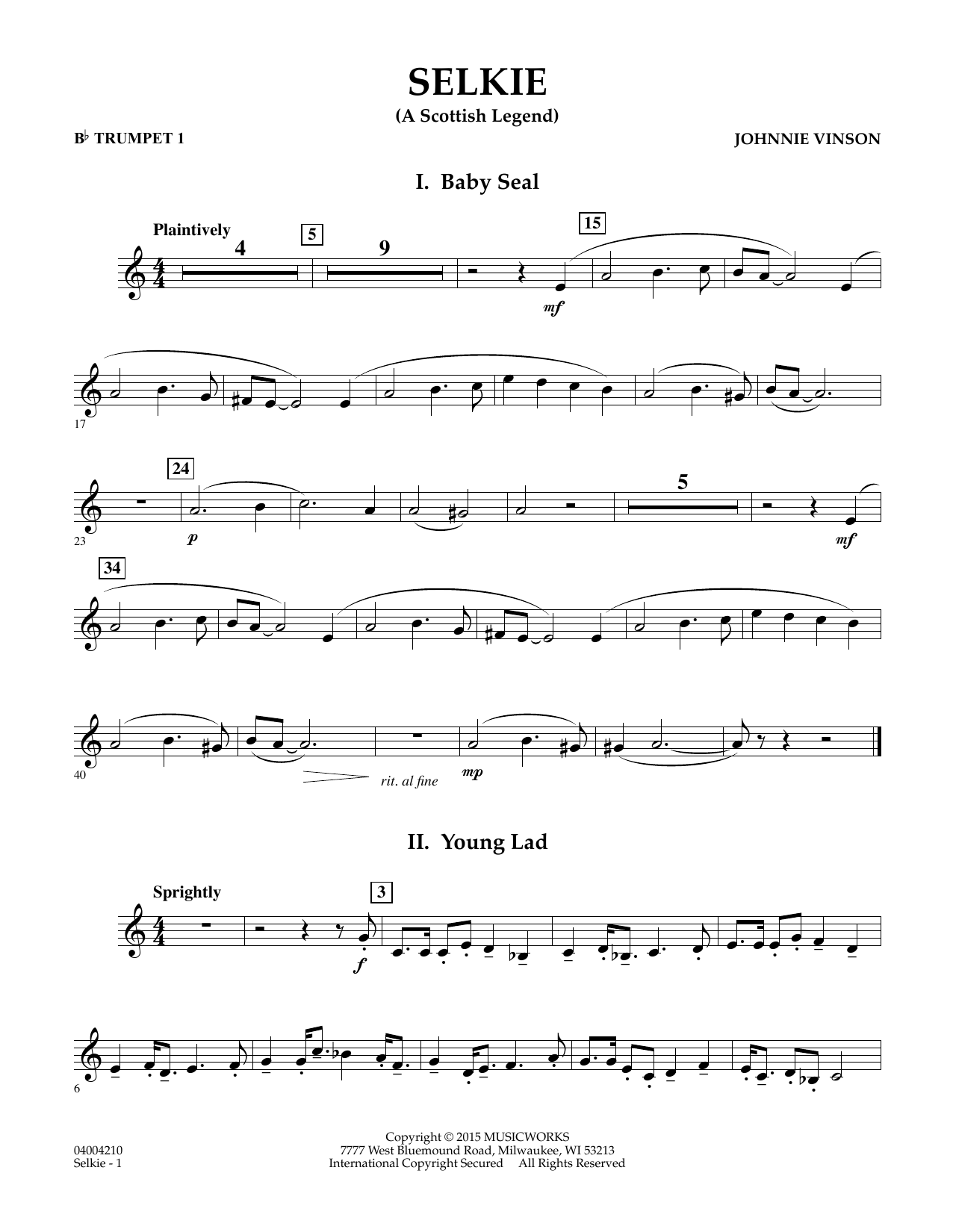 In Celtic folklore, a selkie is a mythical creature appearing as a seal in water, but taking human form on land. In this striking setting for second-year players the first movement, in a lyric and melancholy style, portrays the selkie as a baby seal. The second movement depicts a young boy on land and employs a number of characteristics of traditional Scottish folk tunes. This marvelous work provides opportunities for musical and cross-curricular exploration. Dur: 3:50