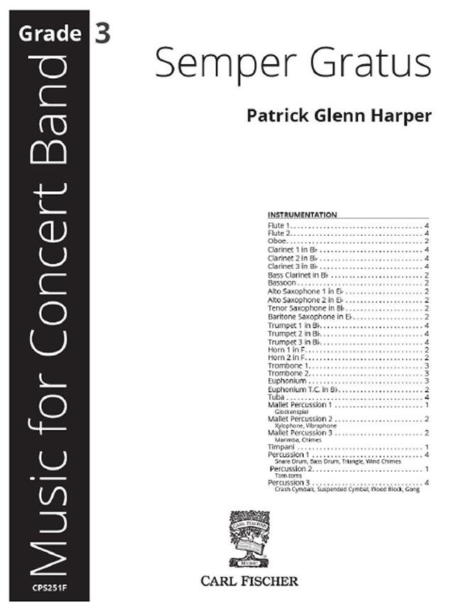 Written in honor of the composer’s band director, this challenging concert opener or contest selection is designed to develop fundamentals of music, technical aspects of performance and expose students to great band literature. With an expanded percussion section, multiple key changes, and interesting melodic, dynamic and rhythmic developments throughout, this composition will help your students be 'always grateful' for your contributions to their music and lives.