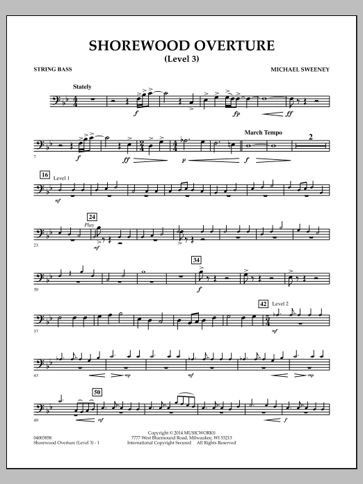 Combining a district-wide extravaganza for players of all levels creates an exciting spectacle for parents, while providing much needed incentives for the younger players. Shorewood Overture is specifically designed to be performed by multi-level bands and, rather than the typical massed band number where everyone plays at once, this ingenious overture allows each level to be featured briefly by itself, along with sections where everyone plays together. In addition, the Level 3 parts include cues (also in the Level 3 score) that allow the piece to be performed by a single ensemble. Dur: 4:20 Note: Level 2/Level 1 versions are not playable separately