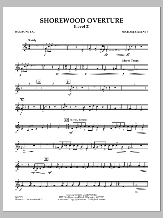 Combining a district-wide extravaganza for players of all levels creates an exciting spectacle for parents, while providing much needed incentives for the younger players. Shorewood Overture is specifically designed to be performed by multi-level bands and, rather than the typical massed band number where everyone plays at once, this ingenious overture allows each level to be featured briefly by itself, along with sections where everyone plays together. In addition, the Level 3 parts include cues (also in the Level 3 score) that allow the piece to be performed by a single ensemble. Dur: 4:20 Note: Level 2/Level 1 versions are not playable separately