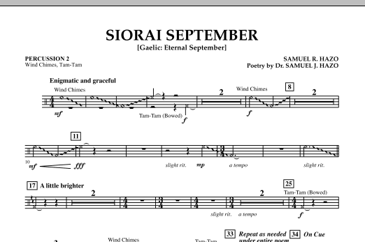 Translated from Gaelic as Eternal September, this marvelous setting for band is designed to take each listener back to their own vivid fall memories on a college campus. Commissioned by the University of Notre Dame and premiered at their Carnegie Hall performance in 2010, this work is also dedicated to the composer's father, Dr. Samuel J. Hazo, a 1949 graduate of Notre Dame. Additionally, Dr. Hazo's poem Home Are the Sailors is incorporated in the middle of the piece. Rich in musical references and varied textures, this is a dramatic and rewarding work for mature ensembles.