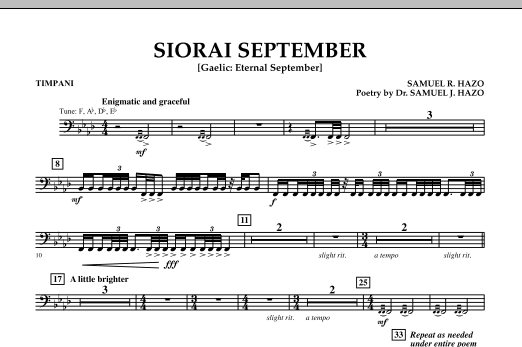 Translated from Gaelic as Eternal September, this marvelous setting for band is designed to take each listener back to their own vivid fall memories on a college campus. Commissioned by the University of Notre Dame and premiered at their Carnegie Hall performance in 2010, this work is also dedicated to the composer's father, Dr. Samuel J. Hazo, a 1949 graduate of Notre Dame. Additionally, Dr. Hazo's poem Home Are the Sailors is incorporated in the middle of the piece. Rich in musical references and varied textures, this is a dramatic and rewarding work for mature ensembles.