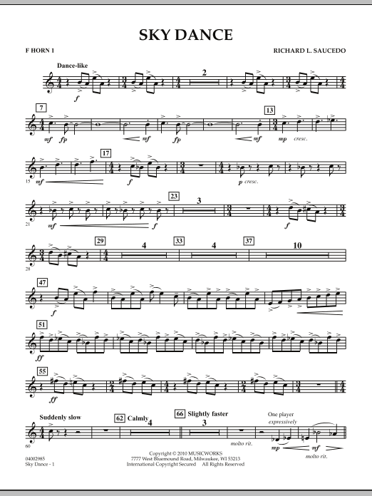 Using a recurring four-note motif and a variety of textural punctuations, here is a stunning and fresh-sounding overture from Richard Saucedo. A slow and lyric middle section featuring woodwind colors and rich emotional contours provides a stark contrast to the rhythmic intensity of the opening and closing sections. Dramatic and powerful! Dur: 4:15