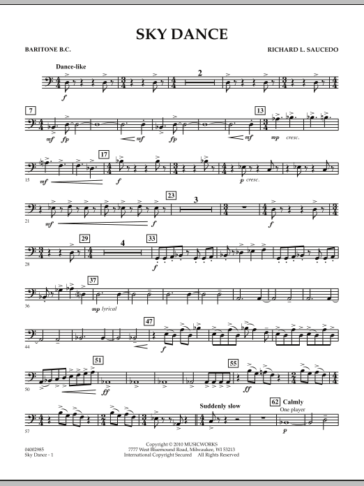 Using a recurring four-note motif and a variety of textural punctuations, here is a stunning and fresh-sounding overture from Richard Saucedo. A slow and lyric middle section featuring woodwind colors and rich emotional contours provides a stark contrast to the rhythmic intensity of the opening and closing sections. Dramatic and powerful! Dur: 4:15