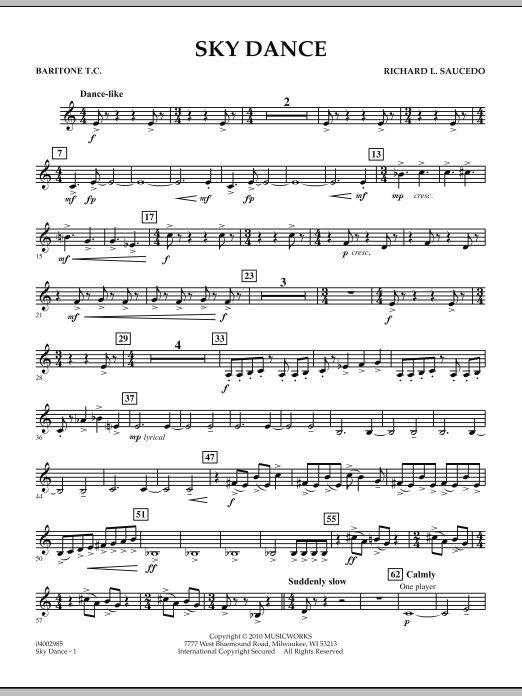 Using a recurring four-note motif and a variety of textural punctuations, here is a stunning and fresh-sounding overture from Richard Saucedo. A slow and lyric middle section featuring woodwind colors and rich emotional contours provides a stark contrast to the rhythmic intensity of the opening and closing sections. Dramatic and powerful! Dur: 4:15