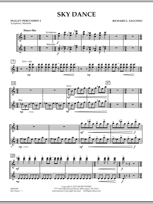 Using a recurring four-note motif and a variety of textural punctuations, here is a stunning and fresh-sounding overture from Richard Saucedo. A slow and lyric middle section featuring woodwind colors and rich emotional contours provides a stark contrast to the rhythmic intensity of the opening and closing sections. Dramatic and powerful! Dur: 4:15