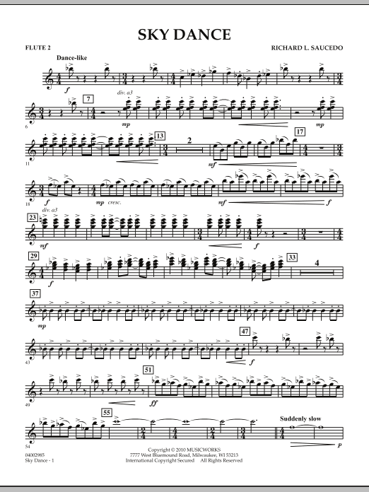 Using a recurring four-note motif and a variety of textural punctuations, here is a stunning and fresh-sounding overture from Richard Saucedo. A slow and lyric middle section featuring woodwind colors and rich emotional contours provides a stark contrast to the rhythmic intensity of the opening and closing sections. Dramatic and powerful! Dur: 4:15