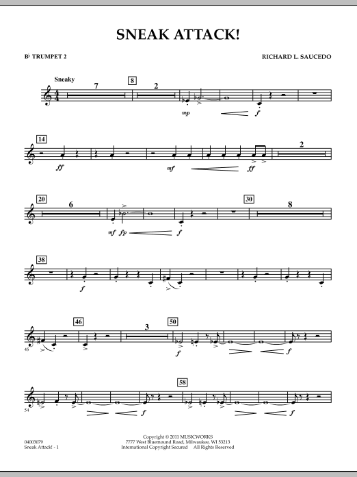You can sense right from the start that someone is sneaking around to give that unexpected surprise to a friend or foe! The percussion provide a simple but effective groove, and a jazzy middle section helps to mix things up and offers nice variety. Written in a single tempo throughout, here is an entertaining piece that will be a blast to perform, and yet musically rewarding to teach. Dur: 2:45