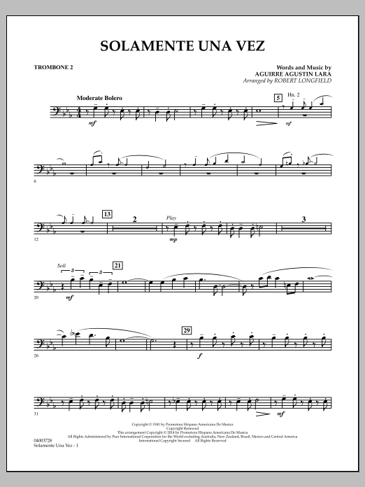 'Solamente Una Vez' von Augustin Lara ist auch bekannt unter dem Titel 'You Belong To My Heart' - oftmals mit englischem Text aufgenommen, beispielsweise von Nat King Cole oder auch Andrea Bocelli. Dieser Titel kommt hier als geschmeidiger Bolero daher - effektvoll arrangiert für Blasorchester von Robert Longfield. Die wunderschönen Harmonien gepaart mit dem mexikanischen Bolero-Groove werden ihre Zuhörer begeistern.