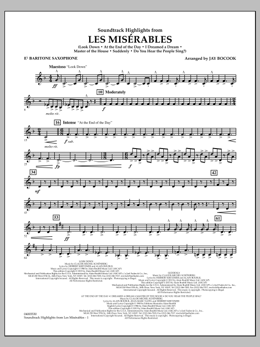 Hier ist eine kraftvolle symphonische Vertonung der Musik aus dem preisgekrönten Film, der auf dem Broadway-Klassiker basiert. Dieses Medley enthält den neuen, für den Film komponierten Song Suddenly zusätzlich zu den bekannten Melodien At the End of the Day, I Dreamed a Dream, Master of the House, Castle on a Cloud und Do You Hear the People Sing?