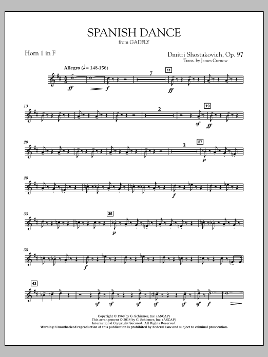 Originally composed for the movie The Gadfly, this brilliant dance number was later included in the Suite for Variety Orchestra No. 2. Carefully crafted in this adaptation for symphonic band, this is an exciting and explosive work suitable as an opener or encore selection. Dur: 2:40
