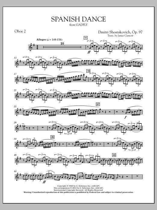 Originally composed for the movie The Gadfly, this brilliant dance number was later included in the Suite for Variety Orchestra No. 2. Carefully crafted in this adaptation for symphonic band, this is an exciting and explosive work suitable as an opener or encore selection. Dur: 2:40