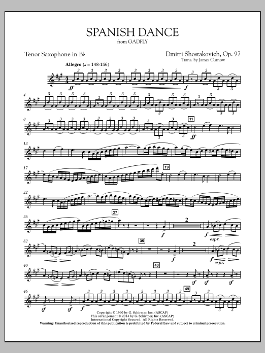 Originally composed for the movie The Gadfly, this brilliant dance number was later included in the Suite for Variety Orchestra No. 2. Carefully crafted in this adaptation for symphonic band, this is an exciting and explosive work suitable as an opener or encore selection. Dur: 2:40