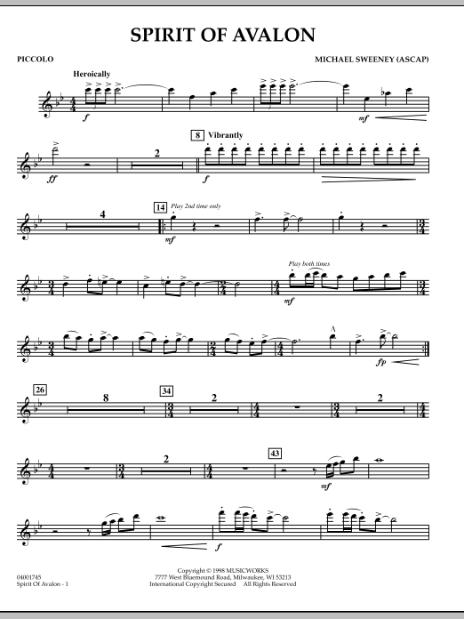Michael Sweeney's newest work is characterized by powerful full band writing as well as contrasting, delicate sections with flowing melodies. As always, Michael's writing keeps the musical interest flowing for all players, making this another work you can trust to motivate your players while teaching strong musical concepts.