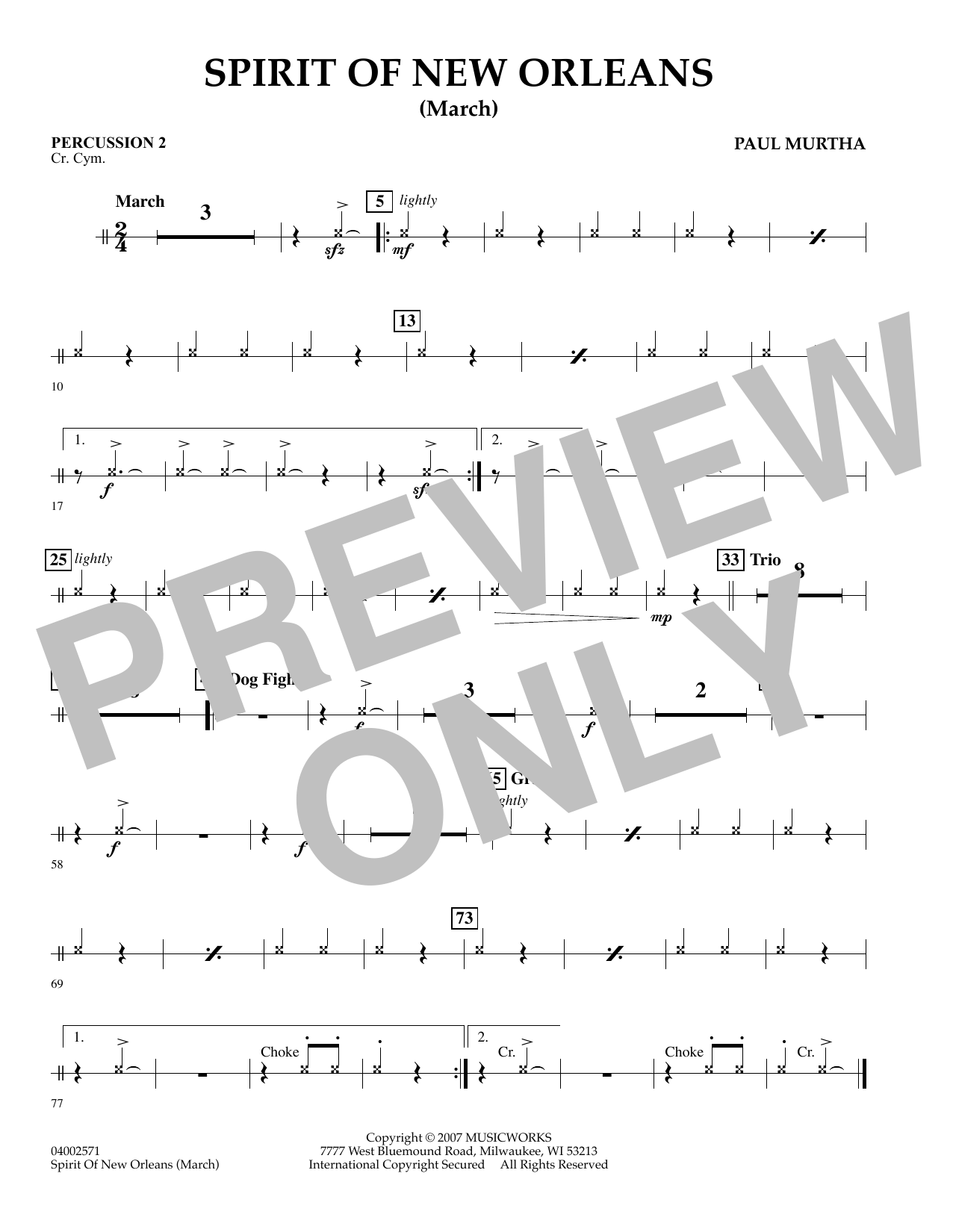 Inspired by the character and spirit of the city it's named for, 'Spirit of New Orleans' is an energetic and dynamic march written specifically for beginning players. Solid scoring and easy rhythms guarantee success with this one.
