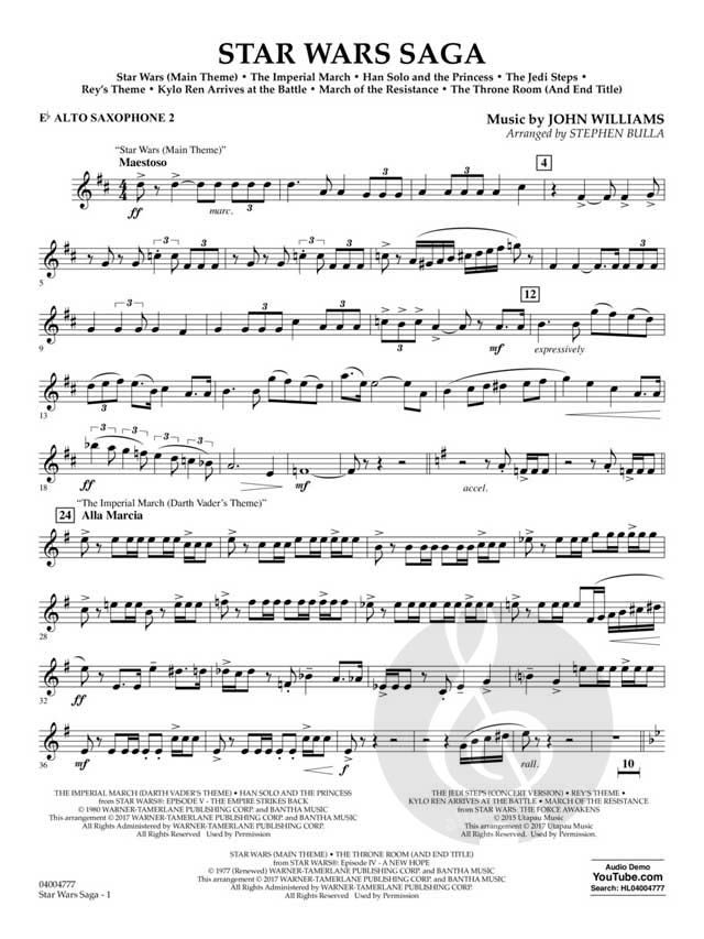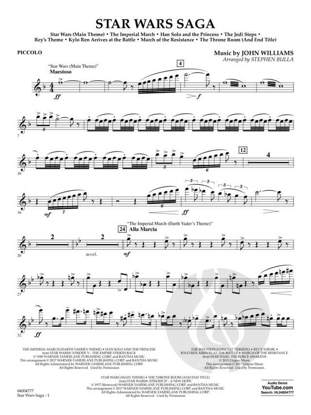 Spanning four decades, the dramatic and evocative themes by John Williams for the Star Wars movies have become a treasured part of our musical heritage. This stunning medley for the concert stage features the familiar main theme along with music associated with Darth Vader, Han Solo, Princess Leia, and recent themes for Rey, Kylo Ren, as well as the dramatic March of the Resistance. A guaranteed highlight for any program!