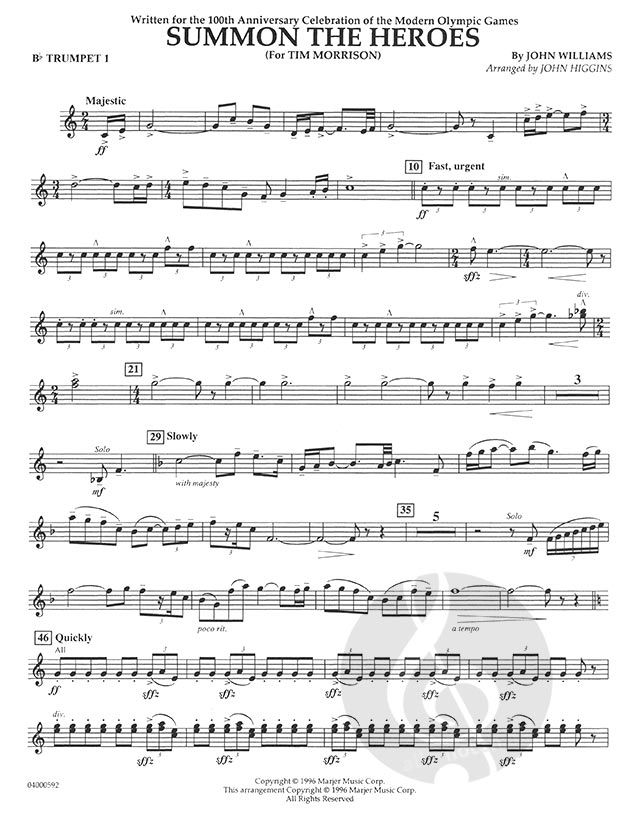 Wieder einmal wandte sich das Olympische Komitee an den altgedienten Komponisten John Williams, um ein neues Werk zu schreiben, das als offizielles Thema für die 100-Jahr-Feier der Olympischen Spiele dienen sollte. Jahrestag der Olympischen Spiele zu dienen. John Higgins hat diese praktische, spielbare Ausgabe mit dem lyrischen Trompetensolo versehen, das ursprünglich von Tim Morrison vom Boston Pops Orchestra gespielt wurde. Dies ist eine Veröffentlichung für Band, die auf den Konzertbühnen der nächsten Jahre zu hören sein wird.