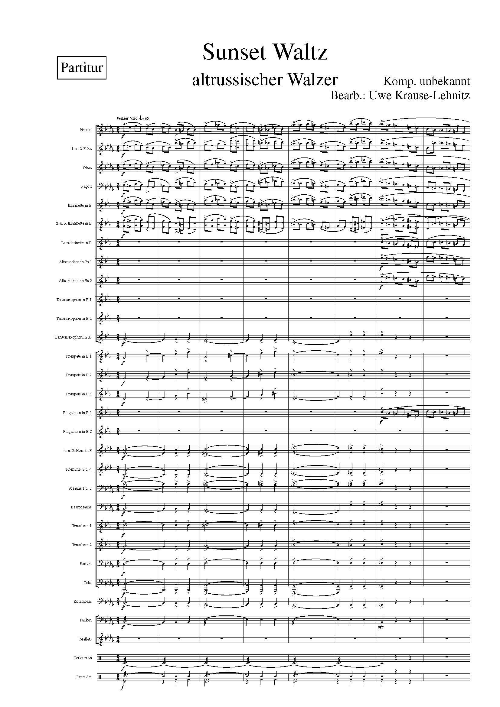 Ein stimmungsvoller Walzer, voll russicher Seele. Blasorchesterbearbeitung von Uwe Kause-Lehnitz. Partitur und Einzelstimmen.